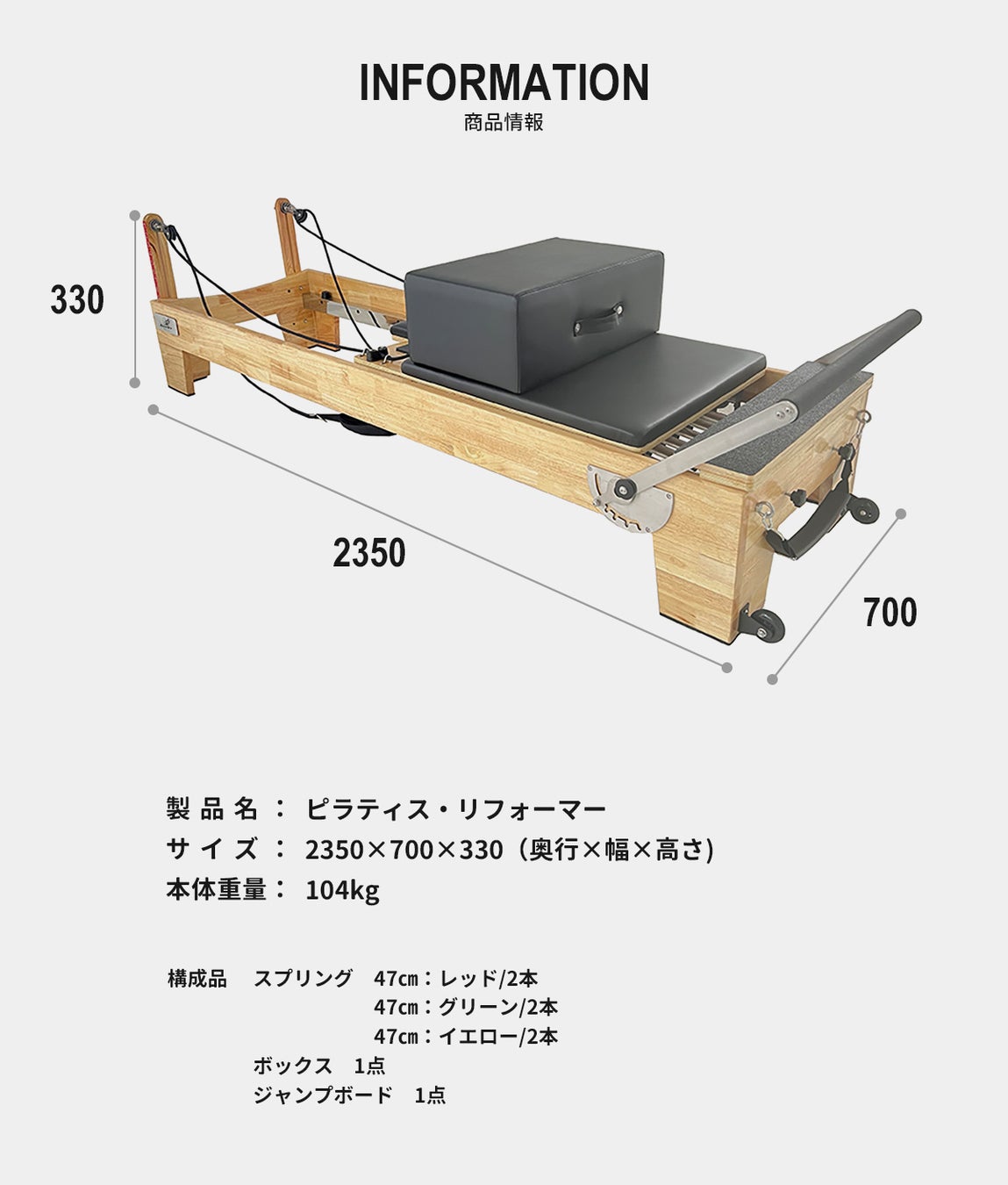 欧米製のピラティスマシンは、日本人にとって大きすぎる場合が多く、使いにくいという声を解決するために日本人の骨格に合わせたコンパクトなピラティスマシンを開発しました。