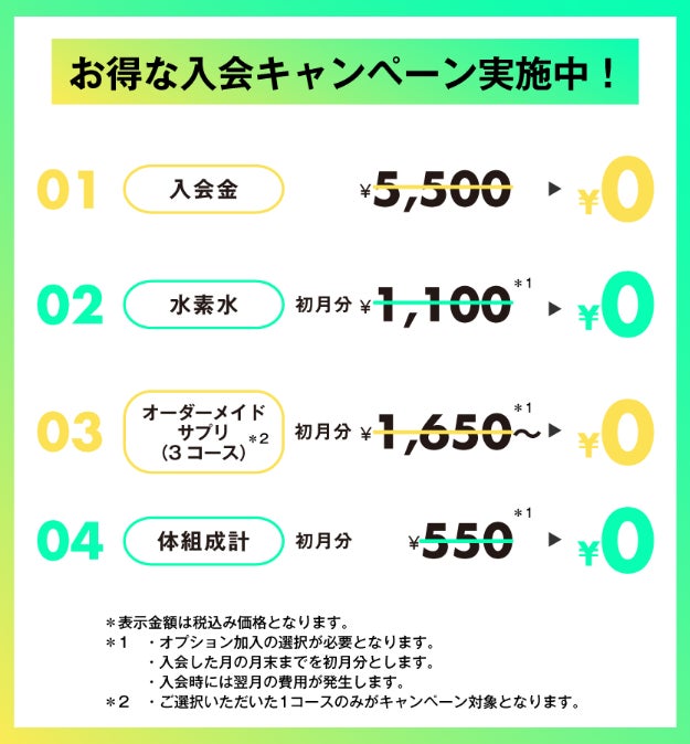 特典2:オプション水素水飲み放題月額 ¥1,000(税別)→初月分無料!!