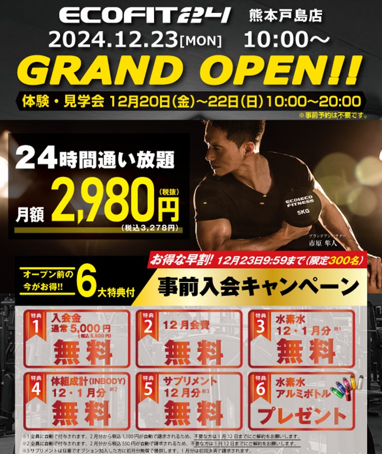 【九州エリア初上陸】 「ECOFIT24」(エコフィット24)熊本戸島店が12/23グランドオープン!